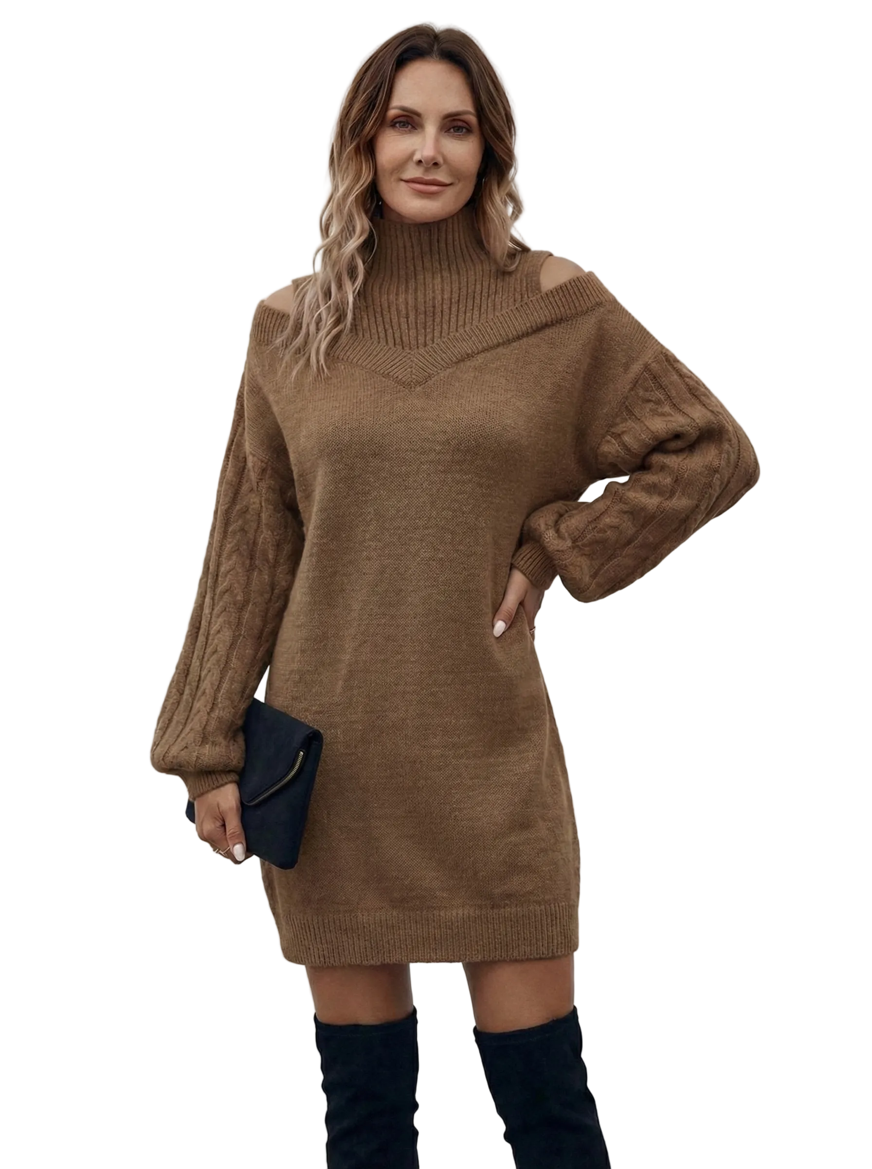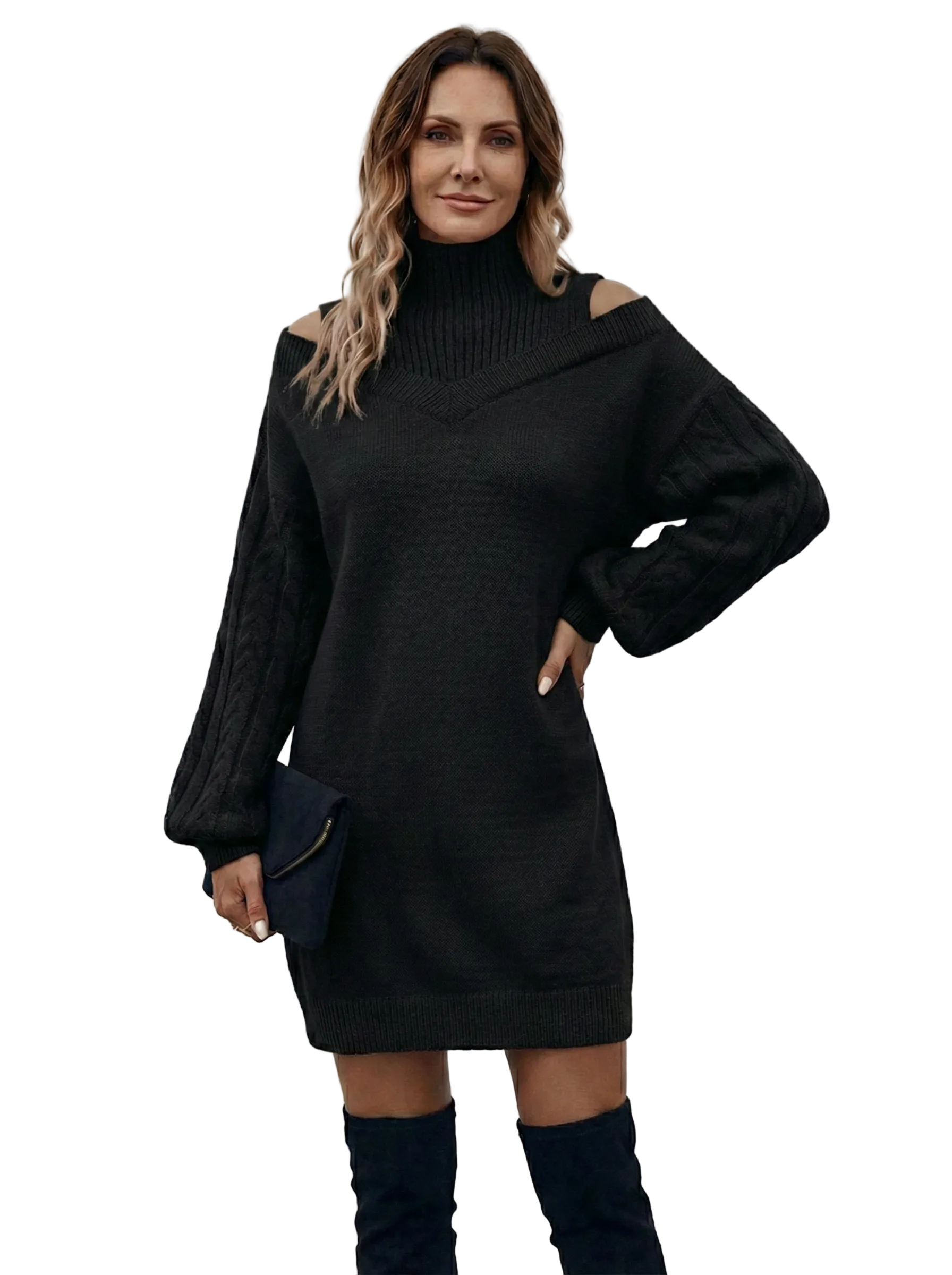 Cette robe-pull réinterprète le design iconique Éclipse dans une silhouette allongée et résolument élégante. Alliant un col montant architectural à des épaules dénudées, elle offre une allure sophistiquée qui sublime vos tenues hivernales avec subtilité.