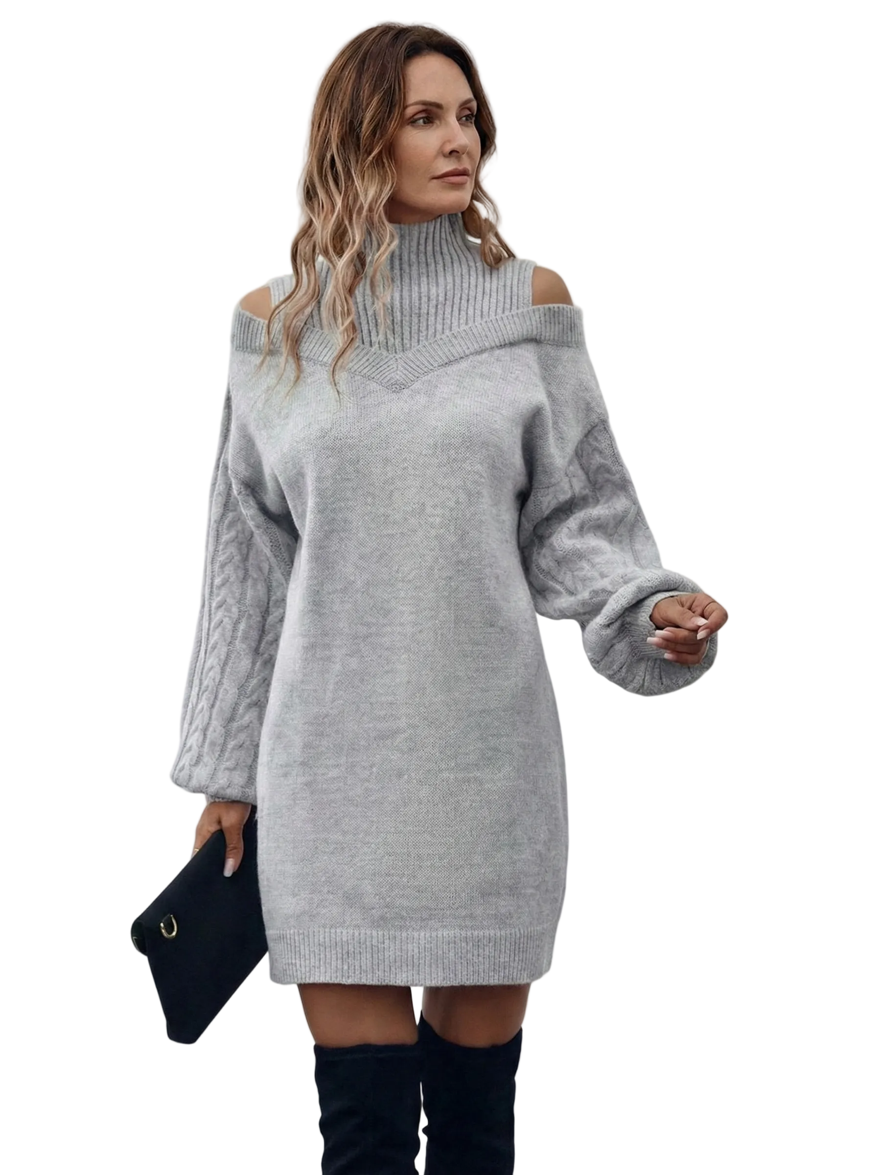 "Ce modèle gris est d'une douceur incroyable. J'adore le détail des épaules dénudées, c'est très chic pour l'hiver."