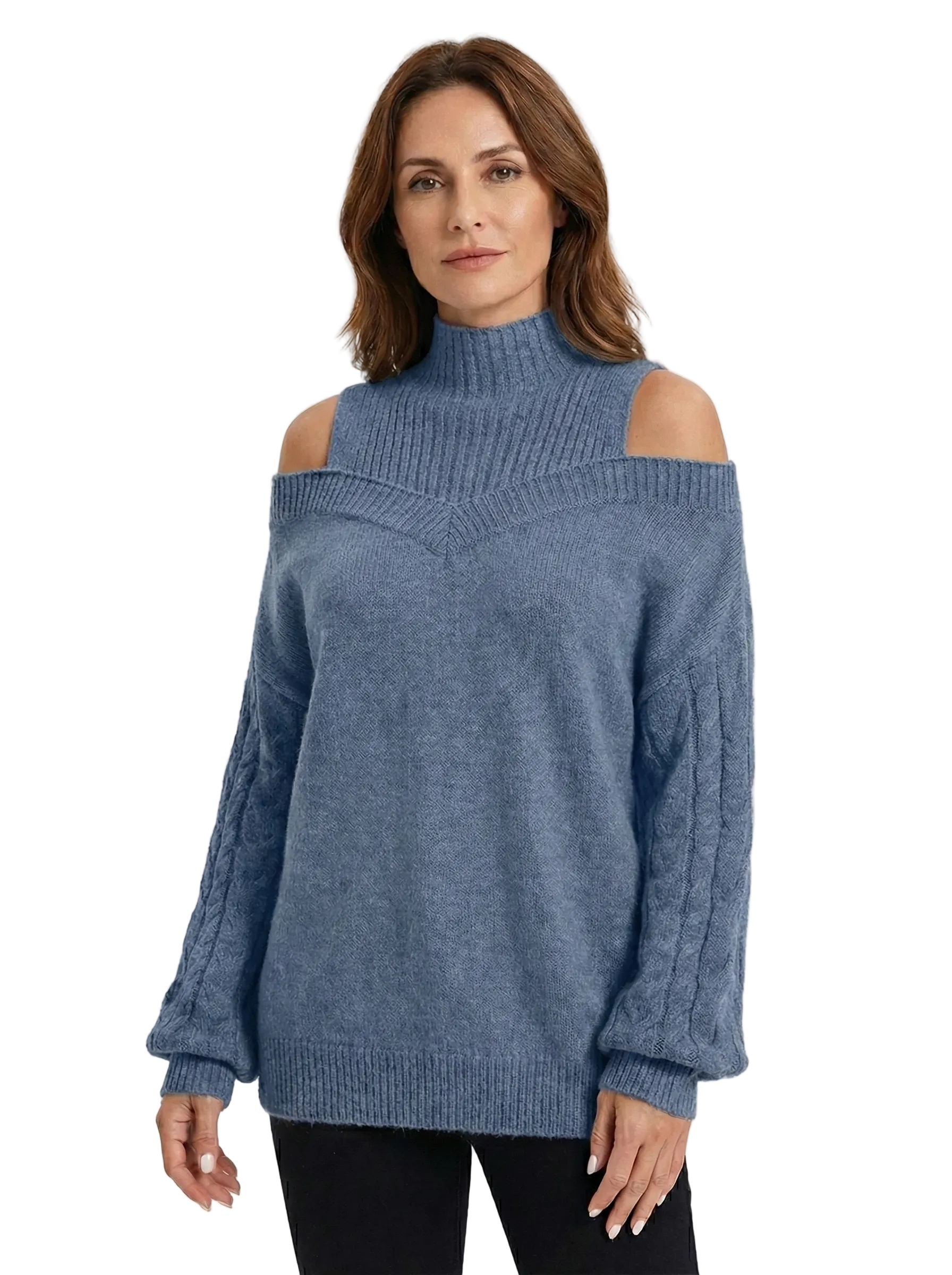 Ce pull en maille côtelée se distingue par son col roulé architectural et ses découpes précises aux épaules, dévoilant le silhouet avec subtilité. Une pièce maîtresse qui transforme un essentiel de saison en un véritable manifeste de style moderne.