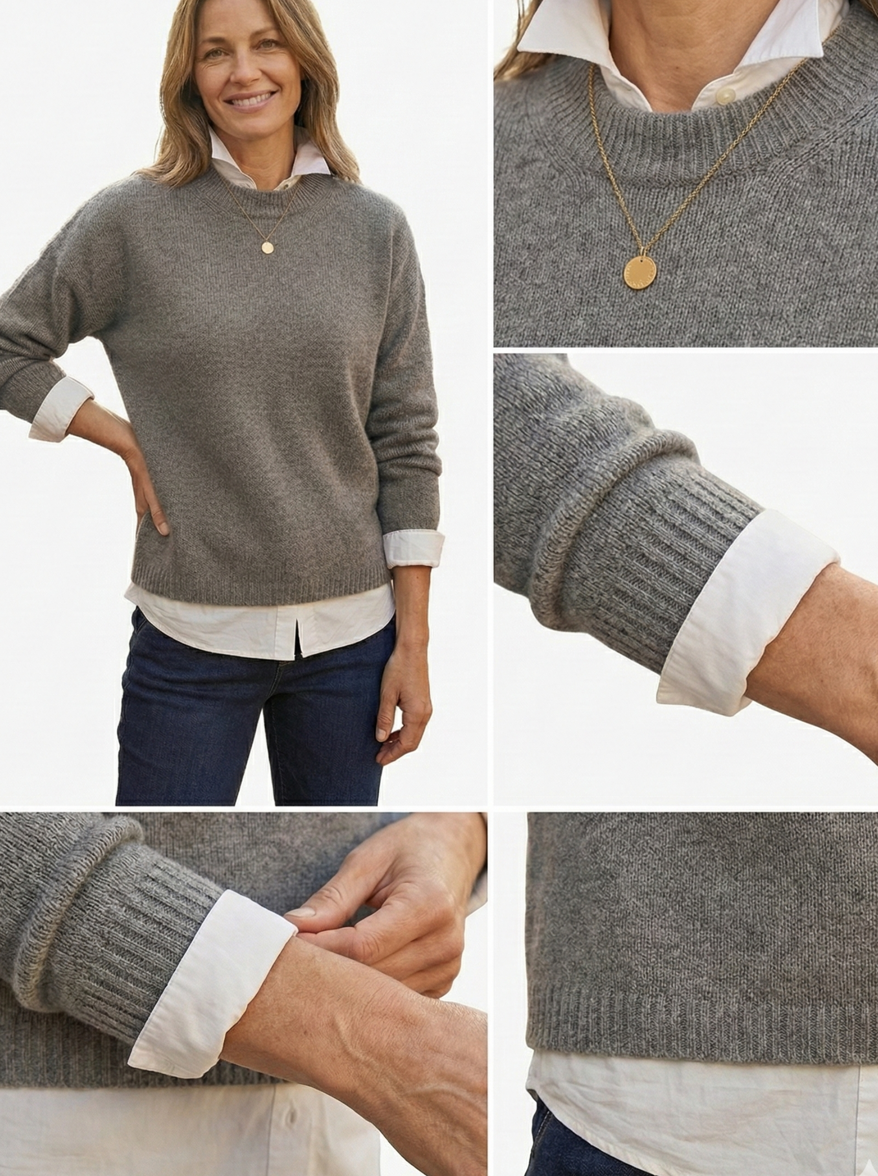 Ce tricot 2-en-1 a été pensé pour celles qui veulent une silhouette impeccable en un clin d'œil. Il combine la douceur d'une maille de qualité avec l'élégance d'un col de chemise blanc, le tout réuni en une seule pièce parfaitement ajustée.